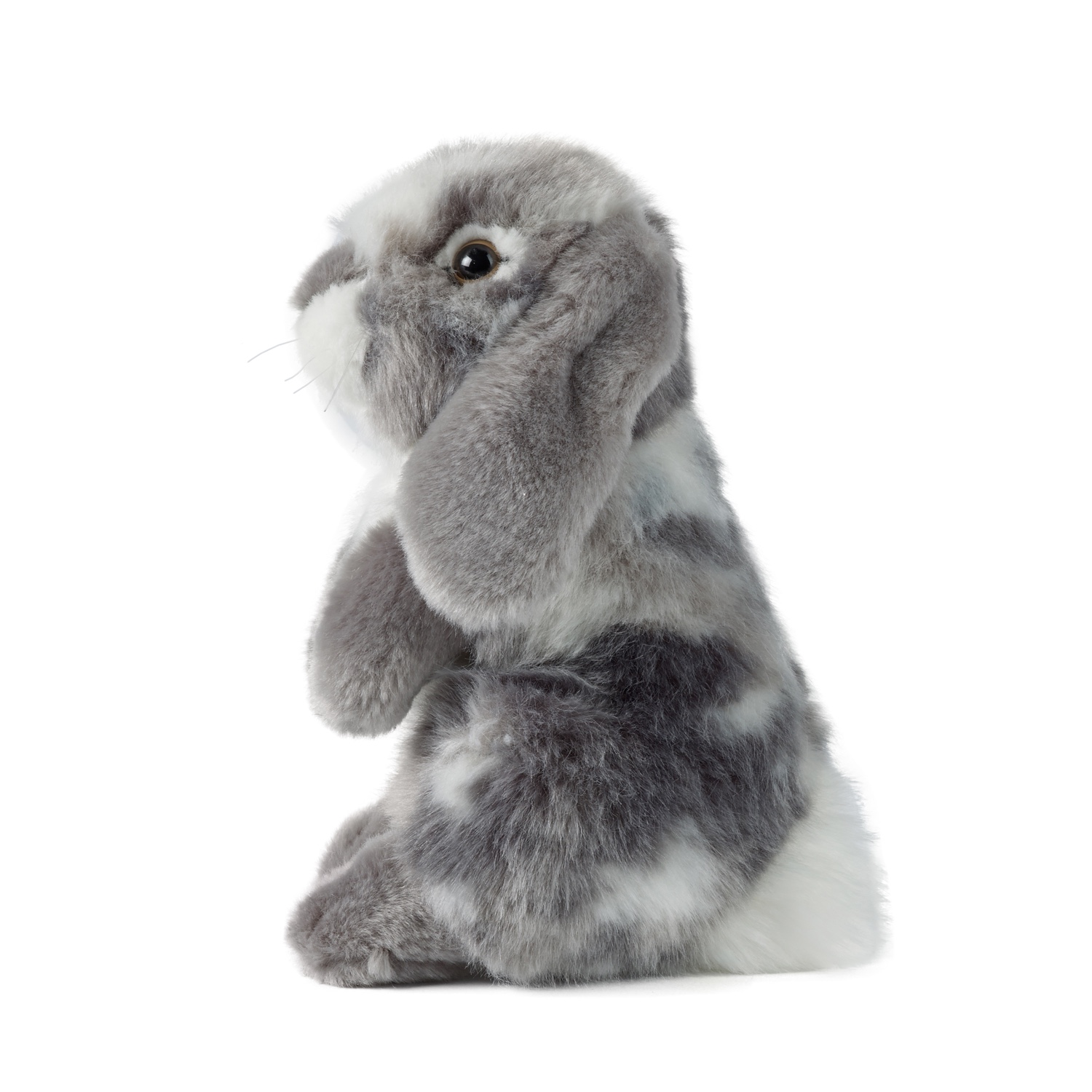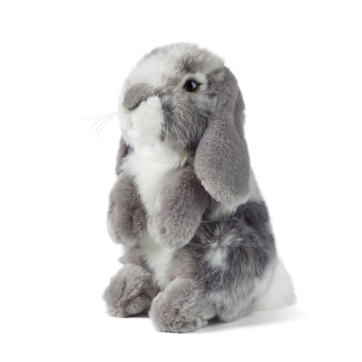 Dieses bezaubernde graue sitzende Schlappohrkaninchen wurde so gefertigt, dass es realistisch aussieht!